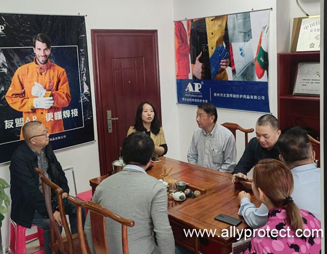 2022年3月4日,廣東省安全生產(chǎn)協(xié)會勞動防護(hù)分會會長李聲譽(yù)、秘書長祝平、副秘書長杜玉霜一行到達(dá)副會長單位——梧州市友盟焊接防護(hù)用品有限公司,受到了友盟總監(jiān)鄒暖春及公司各區(qū)域負(fù)責(zé)人的熱情接待。