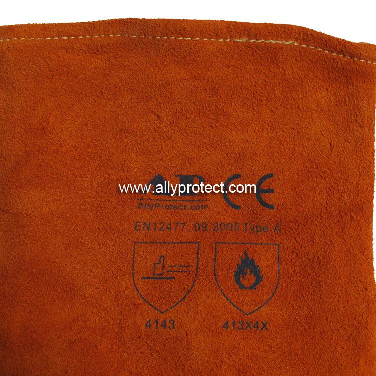 - 產(chǎn)品描述: [ AP ]銹橙色牛二層皮全皮電焊手套,直拇指護(hù)縫設(shè)計(jì),適用于焊接、切割及搬運(yùn)等用途。